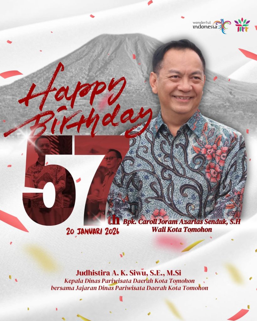 Selamat ulang tahun ke-57 Wali Kota Tomohon, Bpk. Caroll Joram Azarias Senduk, SH